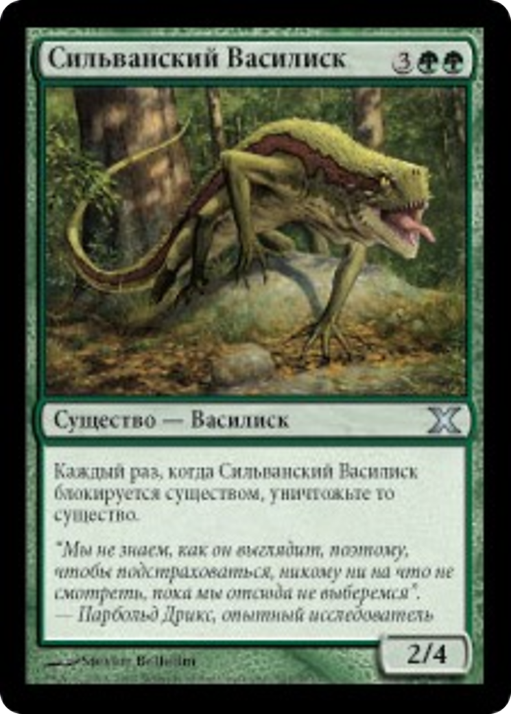 Whenever Sylvan Basilisk becomes blocked by a creature, destroy that creature.