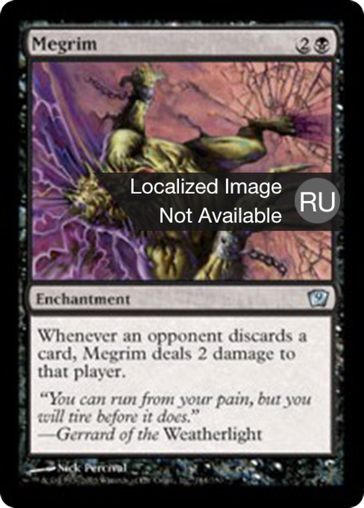 Whenever an opponent discards a card, Megrim deals 2 damage to that player.