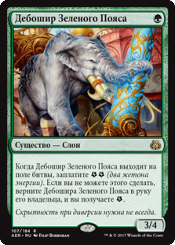 When Greenbelt Rampager enters the battlefield, pay {E}{E} (two energy counters). If you can't, return Greenbelt Rampager to its owner's hand and you get {E}.