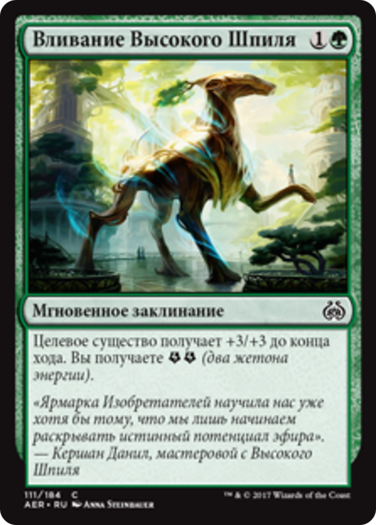 Target creature gets +3/+3 until end of turn. You get {E}{E} (two energy counters).