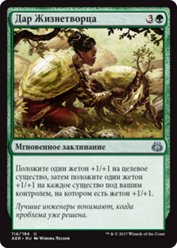 Put a +1/+1 counter on target creature, then put a +1/+1 counter on each creature you control with a +1/+1 counter on it.