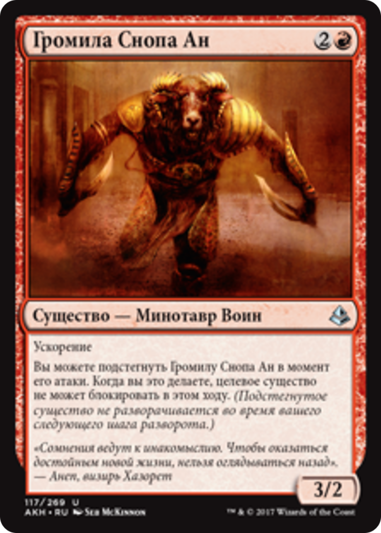 Haste You may exert Ahn-Crop Crasher as it attacks. When you do, target creature can't block this turn. (An exerted creature won't untap during your next untap step.)