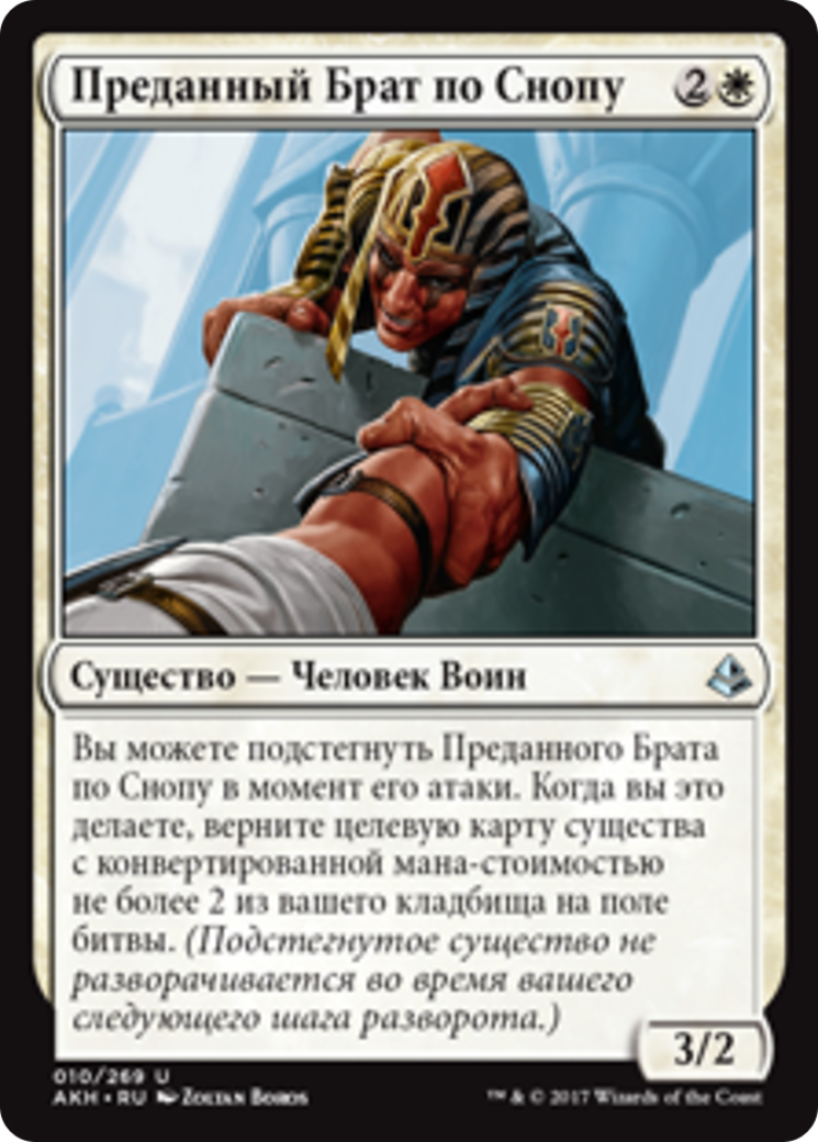 You may exert Devoted Crop-Mate as it attacks. When you do, return target creature card with mana value 2 or less from your graveyard to the battlefield. (An exerted creature won't untap during your next untap step.)