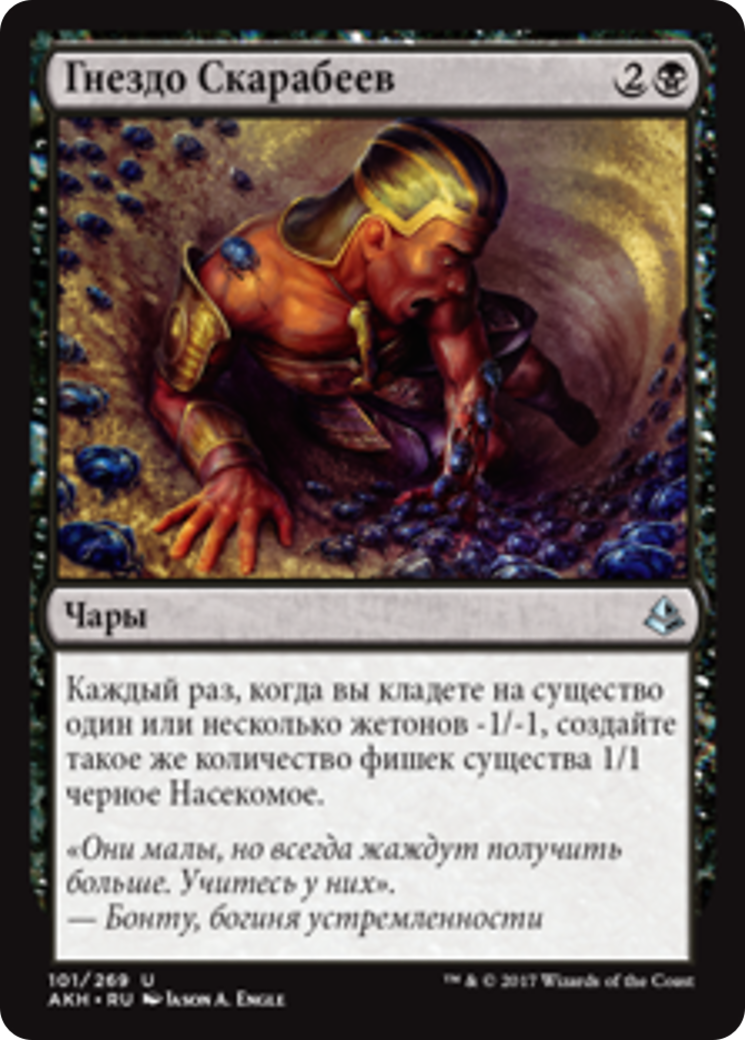 Whenever you put one or more -1/-1 counters on a creature, create that many 1/1 black Insect creature tokens.