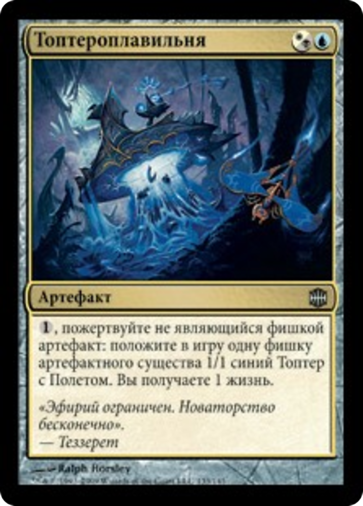 {1}, Sacrifice a nontoken artifact: Create a 1/1 blue Thopter artifact creature token with flying. You gain 1 life.