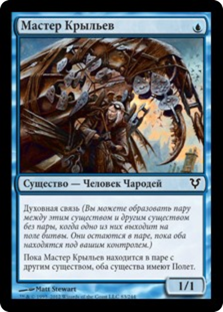 Soulbond (You may pair this creature with another unpaired creature when either enters the battlefield. They remain paired for as long as you control both of them.) As long as Wingcrafter is paired with another creature, both creatures have flying.