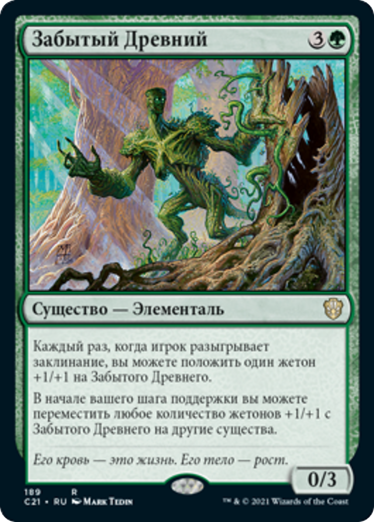At the beginning of your upkeep, you may move any number of +1/+1 counters from Forgotten Ancient onto other creatures.