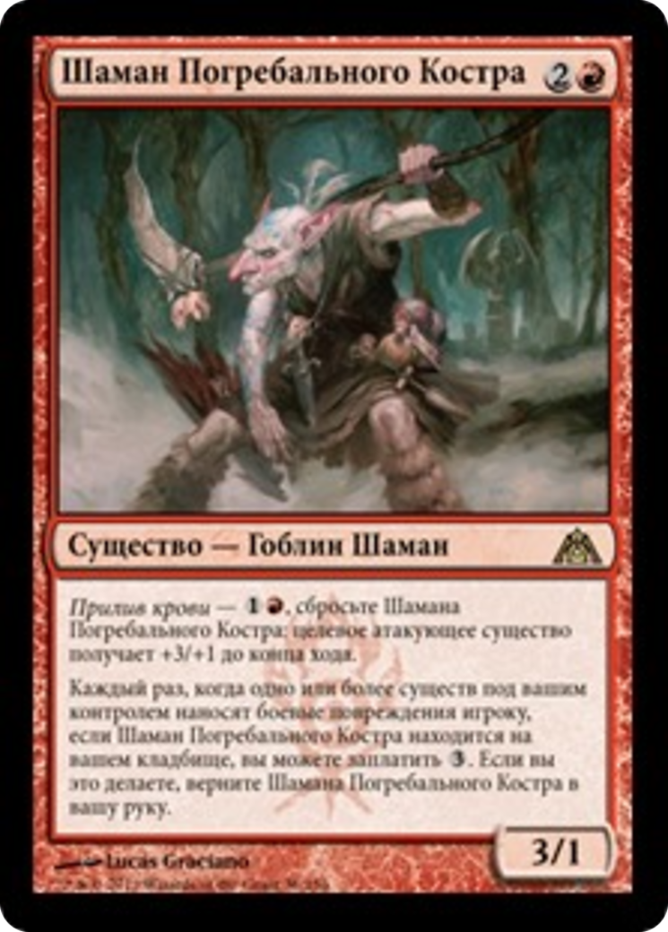 Bloodrush — {1}{R}, Discard Pyrewild Shaman: Target attacking creature gets +3/+1 until end of turn.