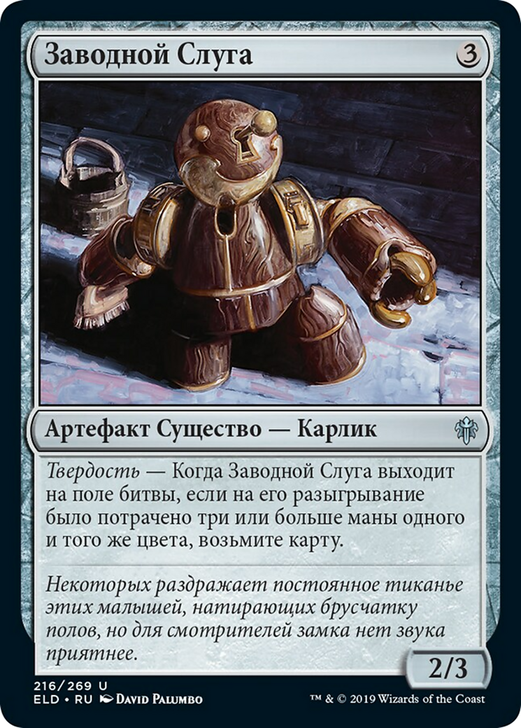 Adamant — When Clockwork Servant enters the battlefield, if at least three mana of the same color was spent to cast it, draw a card.