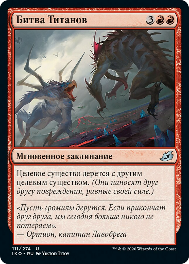Target creature fights another target creature. (Each deals damage equal to its power to the other.)