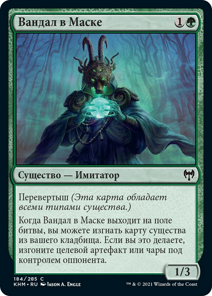 When Masked Vandal enters the battlefield, you may exile a creature card from your graveyard. If you do, exile target artifact or enchantment an opponent controls.