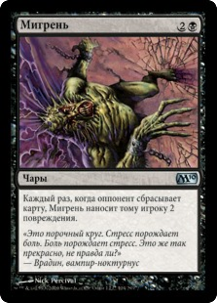 Whenever an opponent discards a card, Megrim deals 2 damage to that player.