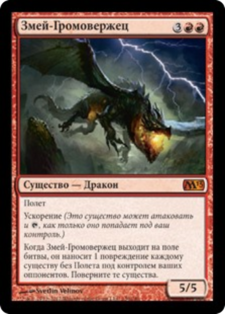 When Thundermaw Hellkite enters the battlefield, it deals 1 damage to each creature with flying your opponents control. Tap those creatures.