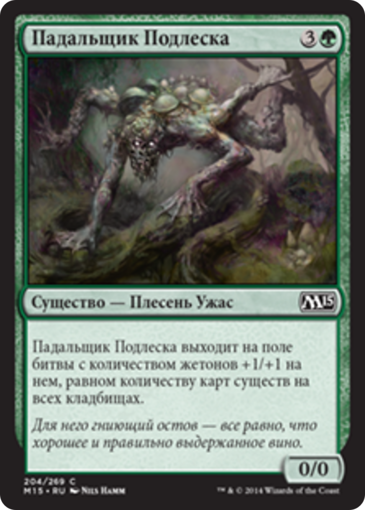 Undergrowth Scavenger enters the battlefield with a number of +1/+1 counters on it equal to the number of creature cards in all graveyards.