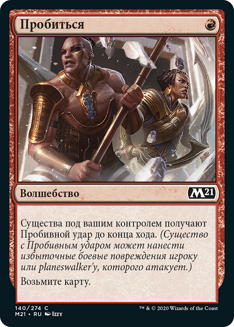 Creatures you control gain trample until end of turn. (A creature with trample can deal excess combat damage to the player or planeswalker it's attacking.) Draw a card.