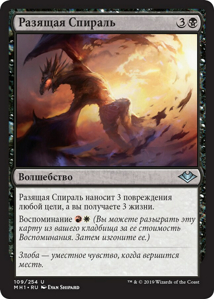 Smiting Helix deals 3 damage to any target and you gain 3 life. Flashback {R}{W} (You may cast this card from your graveyard for its flashback cost. Then exile it.)