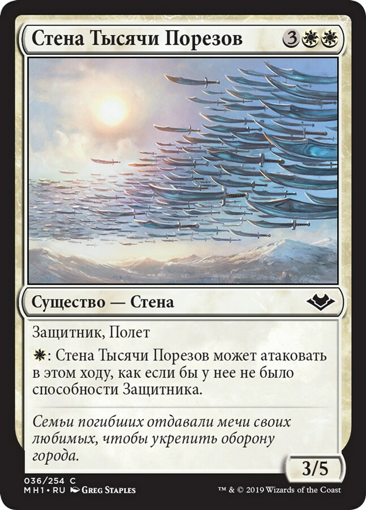 {W}: Wall of One Thousand Cuts can attack this turn as though it didn't have defender.