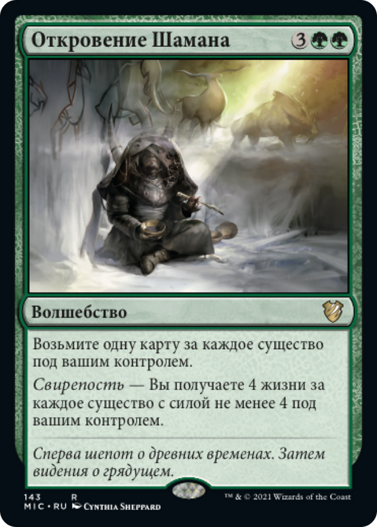 Draw a card for each creature you control. Ferocious — You gain 4 life for each creature you control with power 4 or greater.