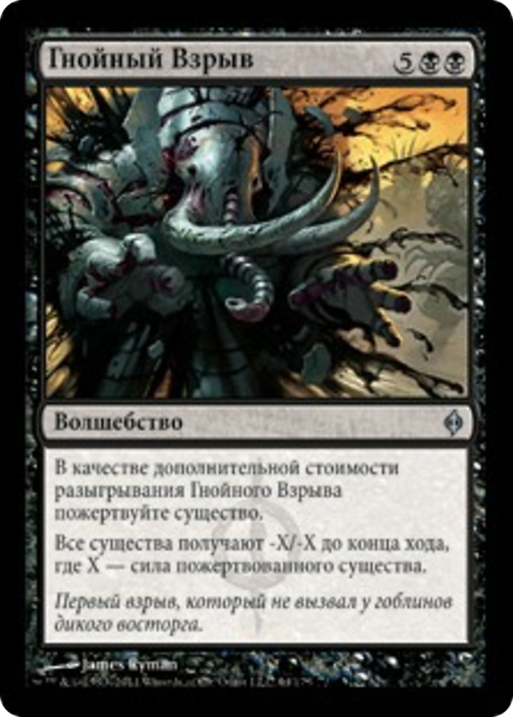 As an additional cost to cast this spell, sacrifice a creature. All creatures get -X/-X until end of turn, where X is the sacrificed creature's power.