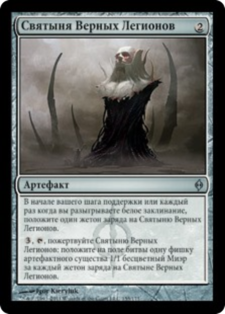 At the beginning of your upkeep or whenever you cast a white spell, put a charge counter on Shrine of Loyal Legions.