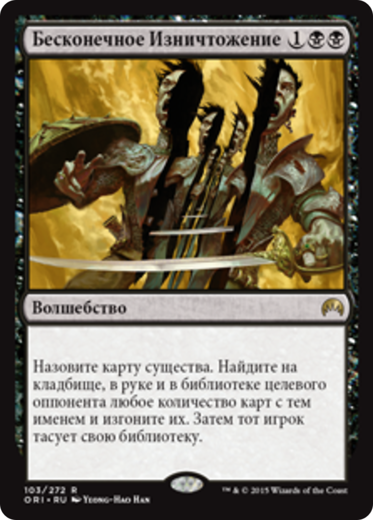 Choose a creature card name. Search target opponent's graveyard, hand, and library for any number of cards with that name and exile them. Then that player shuffles.