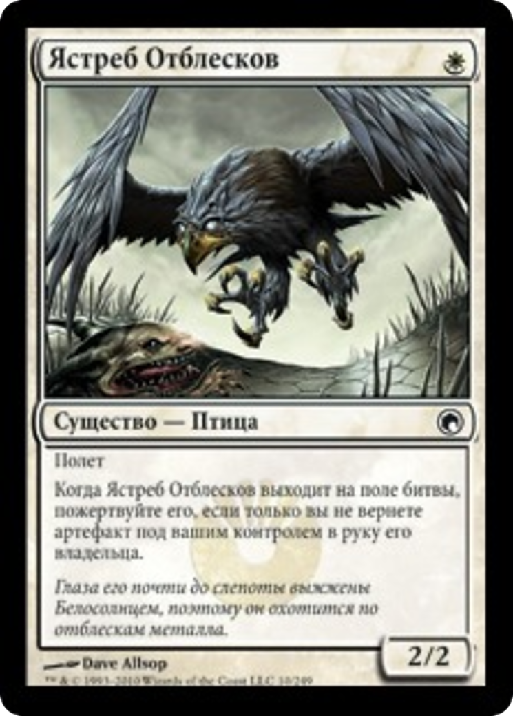Flying When Glint Hawk enters the battlefield, sacrifice it unless you return an artifact you control to its owner's hand.