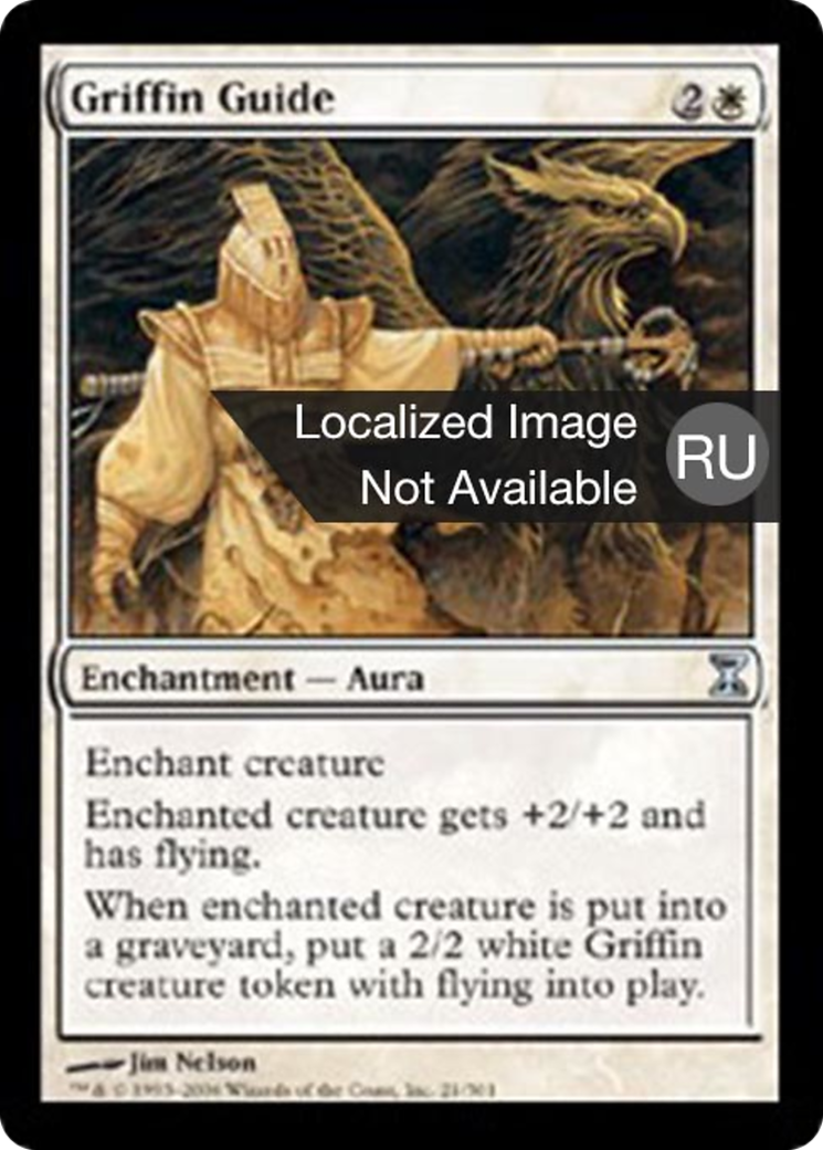 When enchanted creature dies, create a 2/2 white Griffin creature token with flying.