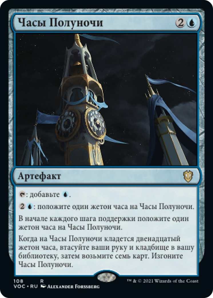 When the twelfth hour counter is put on Midnight Clock, shuffle your hand and graveyard into your library, then draw seven cards. Exile Midnight Clock.