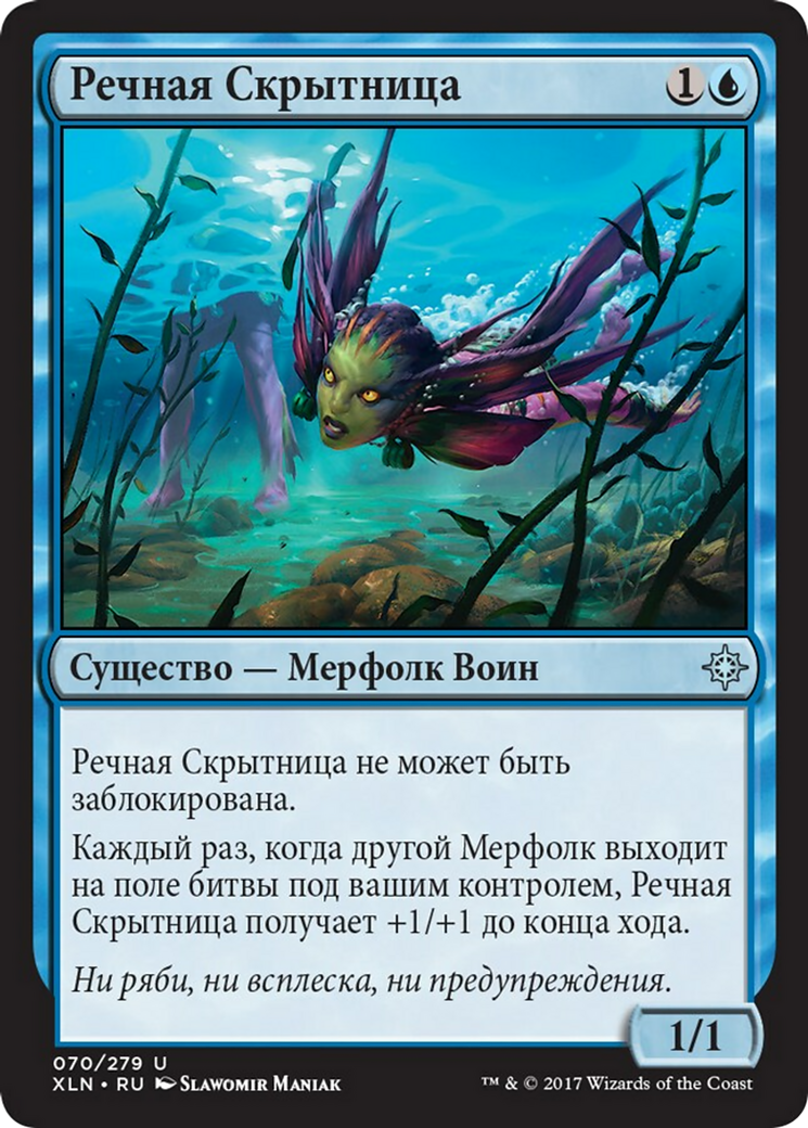 Whenever another Merfolk enters the battlefield under your control, River Sneak gets +1/+1 until end of turn.